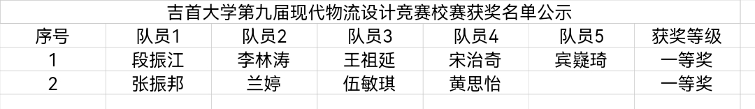 经竞赛组委会组织专家评审,评选出一等奖2个队。现将获奖名单予以公示(详见附件),公示期:2024年9月25日至9月30日。在公示期内,如有异议请发送邮件至电子邮箱:,邮件主题请注明"竞赛结果异议——[现代物流设计竞赛校赛]"。名单见附件。
