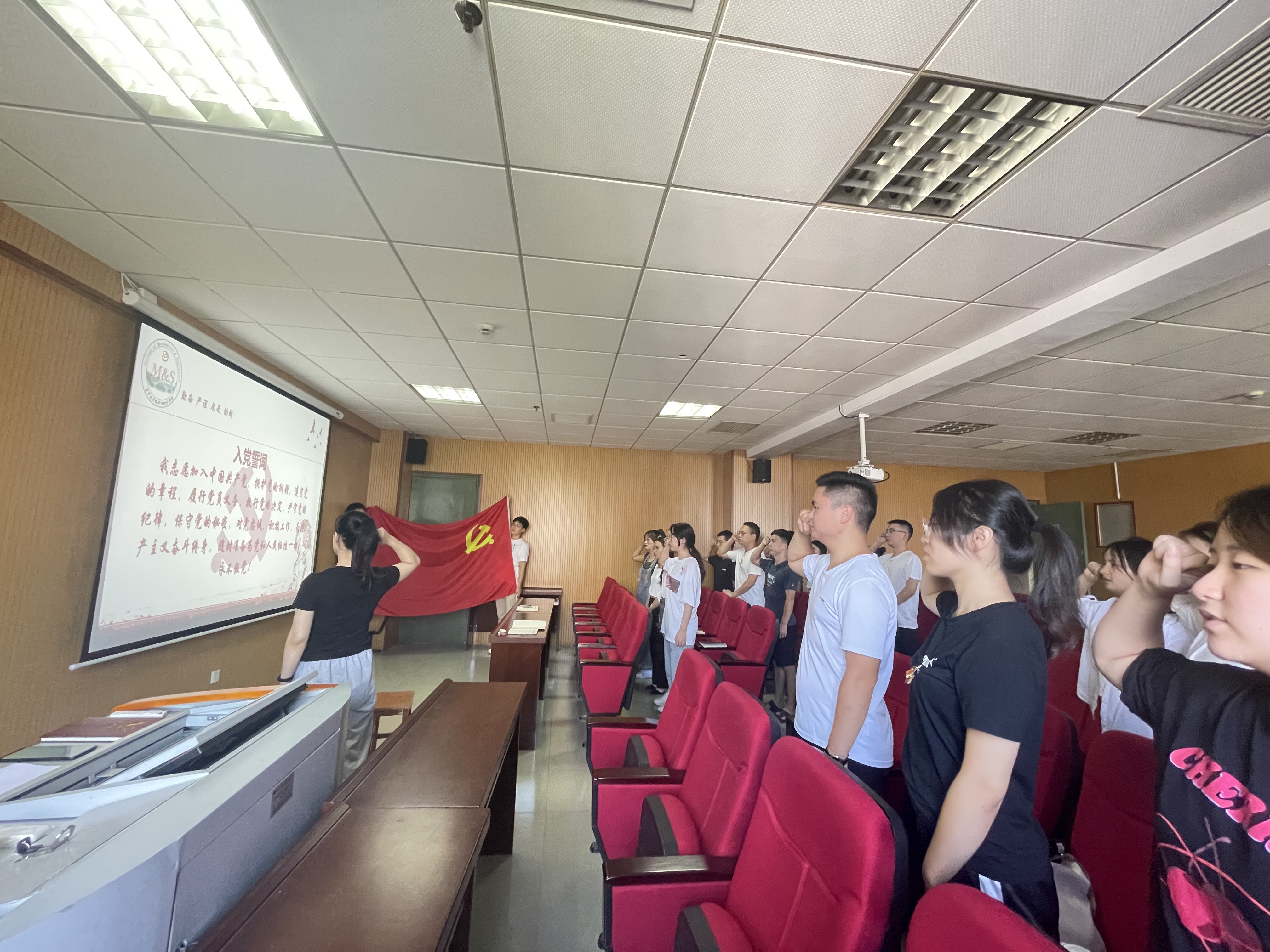 首先,由潘欣媛同志带领党员同志重温入党誓词。初心是理想和信念,初心是激励党员不断前进的力量源泉。只有不忘出发时曾宣告的初心,才能形成实现初心至死不渝的意志。