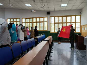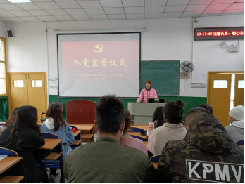 19级数师三班的龙杨慧作为新预备党员代表做了庄重的发言,她表示,“会不断提升自己的思想政治素养,丰富自己的理论知识,自觉抵制腐朽思想的侵蚀,明辨是非善恶,保持党员的先进性,全心全意为人民服务。也将树立终身学习的观念,追求知识,崇尚科学,利用自己所学的科学文化知识更好的服务人民,奉献社会。”