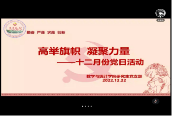 (通讯员 张美杨)为了深入学习宣传贯彻党的二十大精神,党的二十大是一次高举旗帜、凝聚力量、团结奋进的大会,在党和国家发展进程中具有极其重大的历史意义。,2022年12月22日,伟德bv1946官网研究生党支部在腾讯会议开展了主题为“高举旗帜,凝聚力量”十二月份党日活动,活动由张美杨同志主持。