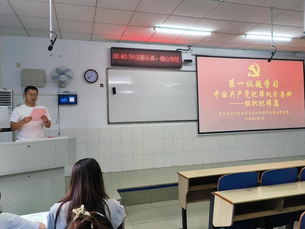(通讯员 范梦萍)为深入学习贯彻习近平总书记关于党纪学习教育重要讲话和重要指示精神,员工第二党支部于2024年6月7日开展“党纪学习”专题党课学习,由党支部书记欧发勋授课。参与本次授课的有经理欧祖军老师、统计系雷亿辉老师、金融工程系罗文诗老师及员工第二党支部全体党员。