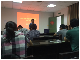10:30—15:00,分组现场考核打分。数学与应用数学专业2014级共95名同学,现场考核分为8组,每组11-12人。在考核中,首先由一名老师组织本组教育问答抽题并确定微课教学顺序。根据所抽取的教育问答题目,员工进行5分钟左右的准备,然后即兴回答所提问题,时间为3分钟。教育问答完成后,员工再进行12-15分钟左右的微课片段教学。微格教学完成后,各组组长负责收集并提交本组成员的微课脚本设计、微课教学设计、微课PPT、教学视频。