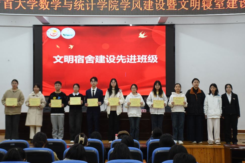 大会在国歌声中启幕,欧发勋老师宣读表彰文件,与会领导老师为学风建设先进班级、文明寝室及优秀个人代表颁发荣誉证书,肯定其勤学奋进、团结文明的良好风貌。