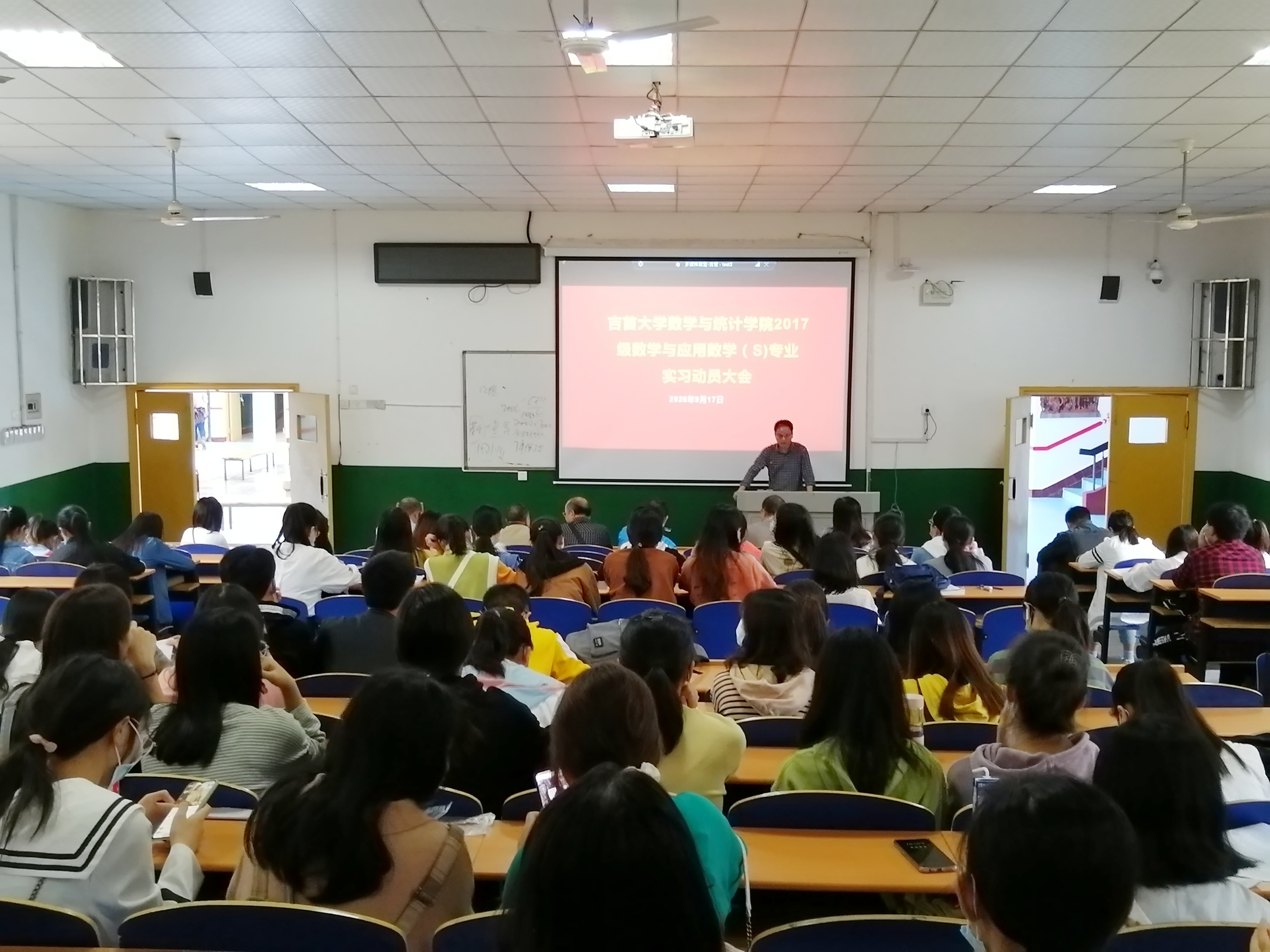 吴利华副书记对实习生进行安全教育,要求实习生既要遵守公司公司的实习规定,也要服从当地实习公司的相关安排。作为实习老师要做好角色的转换,注意言行举止,讲究职业道德。此外对员工人身及财产安全进行再次强调,在外实习要讲团结,讲互助,共同做好实习工作。钟文勇老师结合自己带队实习的经验代表实习指导老师讲话,就实习过程中与实习指导老师之间的沟通技巧,班主任工作以及实习期间需要注意的地方进行了讲解,并对实习生提出希望,遵纪、讲规、做好数统人、做好吉大人,预祝同学们取得收获,学会做人,学会教书,学会管理。