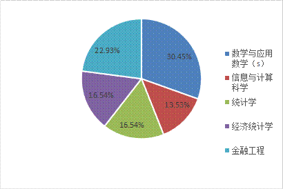 伟德bv1946官网2017届共有本科毕业生266人。其中数学与应用数学(s)专业毕业生81人,占30.45%;信息与计算科学毕业生36人,占13.53%;统计学毕业生44人,占16.54%;经济统计学44人,占16.54%;金融工程专业毕业生61人,占22.93%;如图1.1.1所示。
