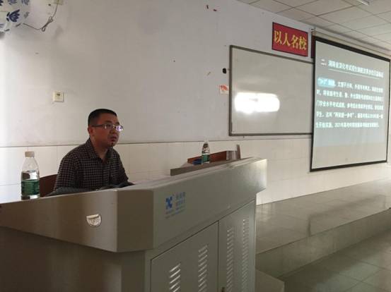 | (图为湘西州民中教科室主任彭群作讲座) |
