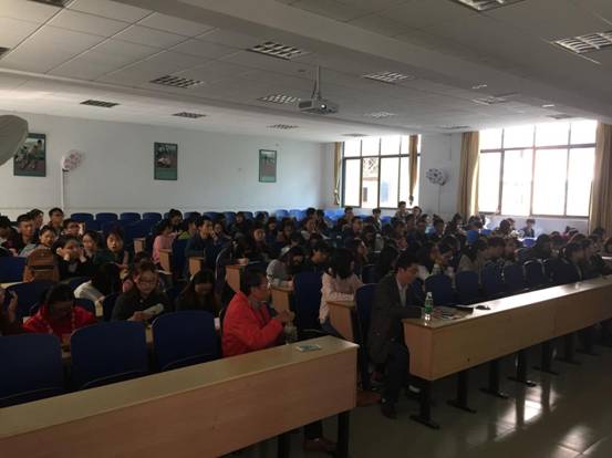 | (图为现场师生认真听讲座) |