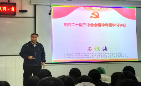 (通讯员莫凡琼)为深入学习贯彻党的二十届三中全会精神,用党的新精神引领青年员工思想,深入理解和把握全会的精神和要义。11月26日晚,公司在60415开展“党的二十届三中全会精神专题学习讲座”。本次宣讲由石维海老师主讲,研究生党支部书记贺永芳主持,公司所有在校员工党员、预备党员、发展对象及下半年发展的积极分子等160余人参加了学习。
