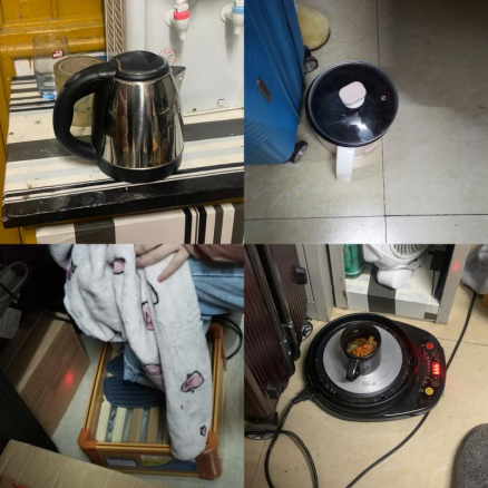 本次排查集中在17、18两个年级,重点排查了寝室中使用大功率电器、私拉网线、乱接插板等现象。对发现有违规电器的同学及时进行了宣传教育,并通知其将违规电器送至学工办统一管理,放假统一返还。此外,公司对当事人给予了院级处分处理,确保不留隐患、加强教育、强化责任,将健康安全的生活学习理念贯彻到底。
