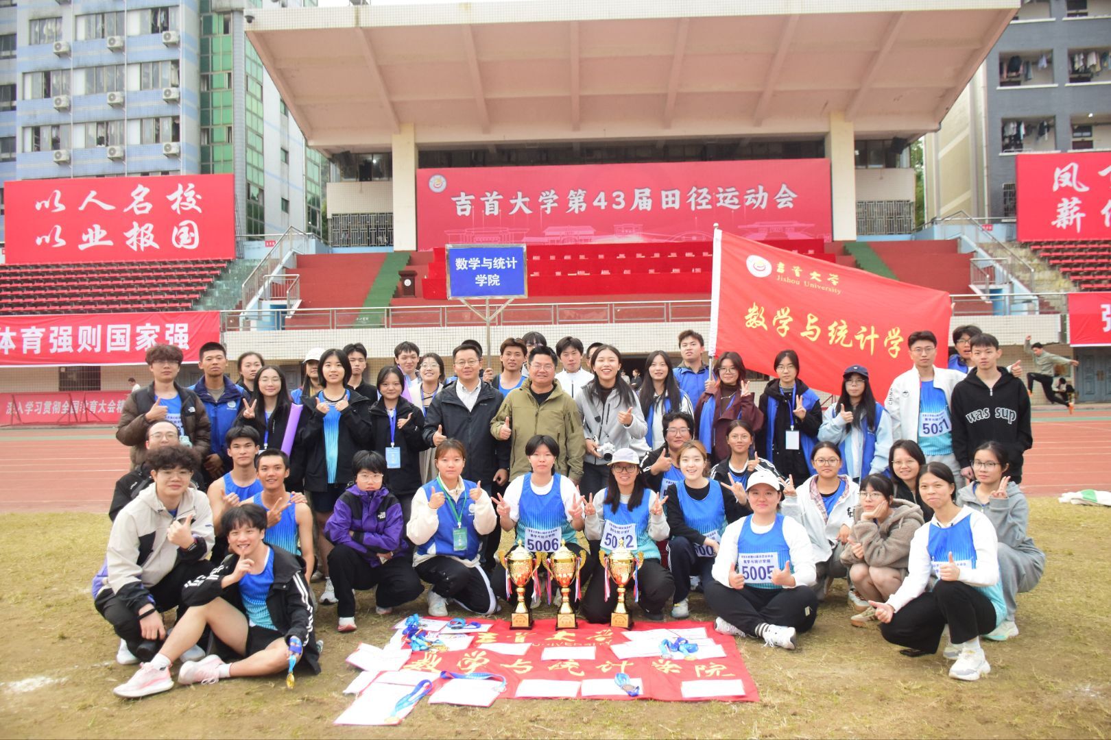 开幕式上,数统院方阵身着统一蓝色马甲、手持红色花球,以数统数统,势贯长虹!勤奋严谨,求是创新!的口号展现青春风貌。首日赛事中,李镇池摘得男子100米桂冠,刘健获男子5000米季军,接力队伍默契配合顺利晋级。次日赛场,学子们在田赛、径赛中全面发力,男子200米、800米决赛均夺冠,4×400米接力队虽未站上领奖台,但展现了永不言弃的协作精神。
