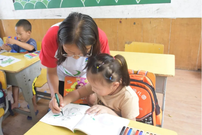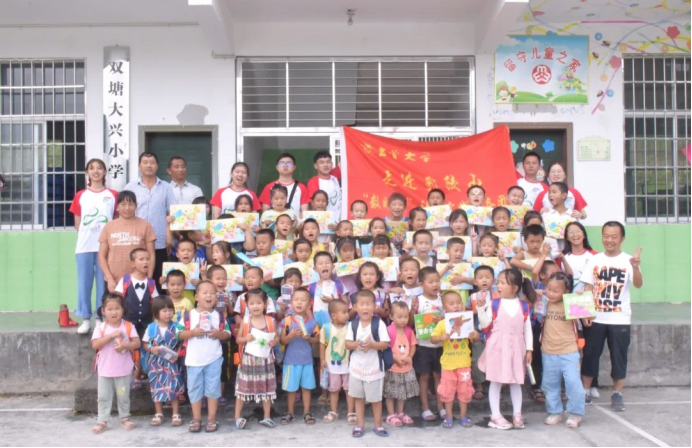 9月2日,“数时代”社会实践服务团前往吉首市大兴村,与校园里的小朋友见面,介绍活动内容并给幼儿园的小朋友赠送水彩笔。志愿者严社燕记得,有个正在上学前班的一个小朋友看向画笔的眼睛里充满着光亮,通过小朋友的老师了解到,这个小朋友是一个十分热爱画画的孩子,她希望以后自己能成为一名设计师,把她喜欢的事物都设计出来。