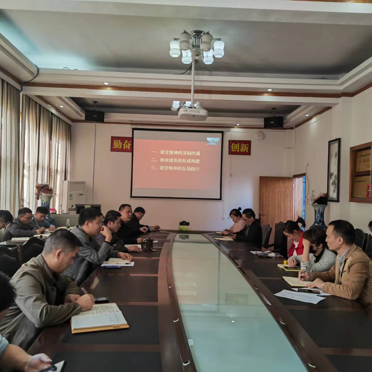 11月2日下午,公司在公司会议室举行了教职工政治理论学习教育活动,公司党委书记王群立给大家上了一堂别开生面的党课。全体教职员工参加了学习活动,欧祖军经理主持学习。